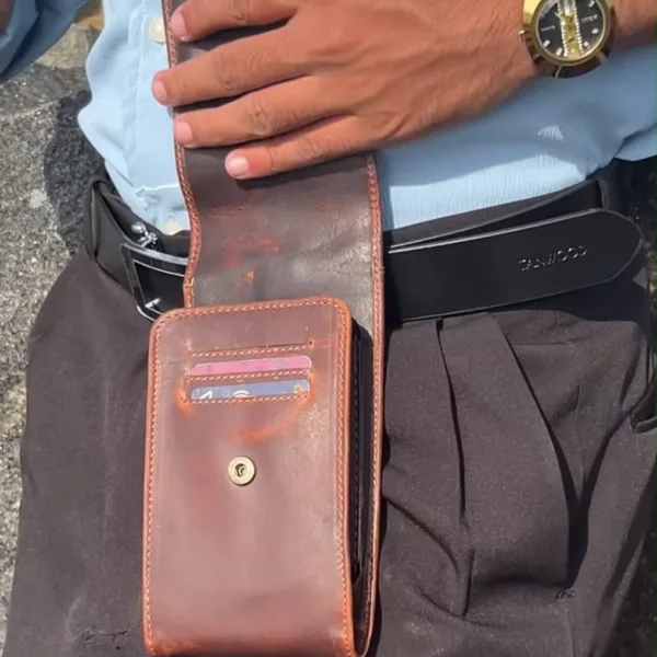 Upgrade your everyday carry with this premium handcrafted leather belt Holster , designed for convenience, style, and durability. Made from rich vintage-finished leather, this pouch attaches securely to your belt, keeping your essentials easily accessible and hands-free. It features 3 quick-access card slots and dual phone compartments, allowing you to carry two phones safely and comfortably. Ideal for travel, work, or daily use, this pouch offers a perfect blend of utility and timeless craftsmanship.