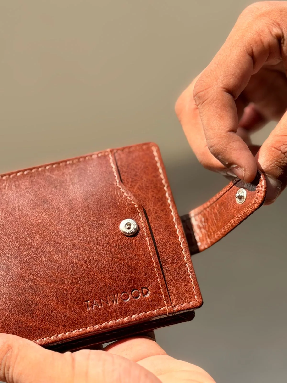 The TANWOOD Atlas Wallet is crafted from rich full leather and designed for everyday reliability with a refined edge. Its structured form, secure strap closure, and clean stitching reflect thoughtful craftsmanship, making it a dependable companion that ages beautifully with use.