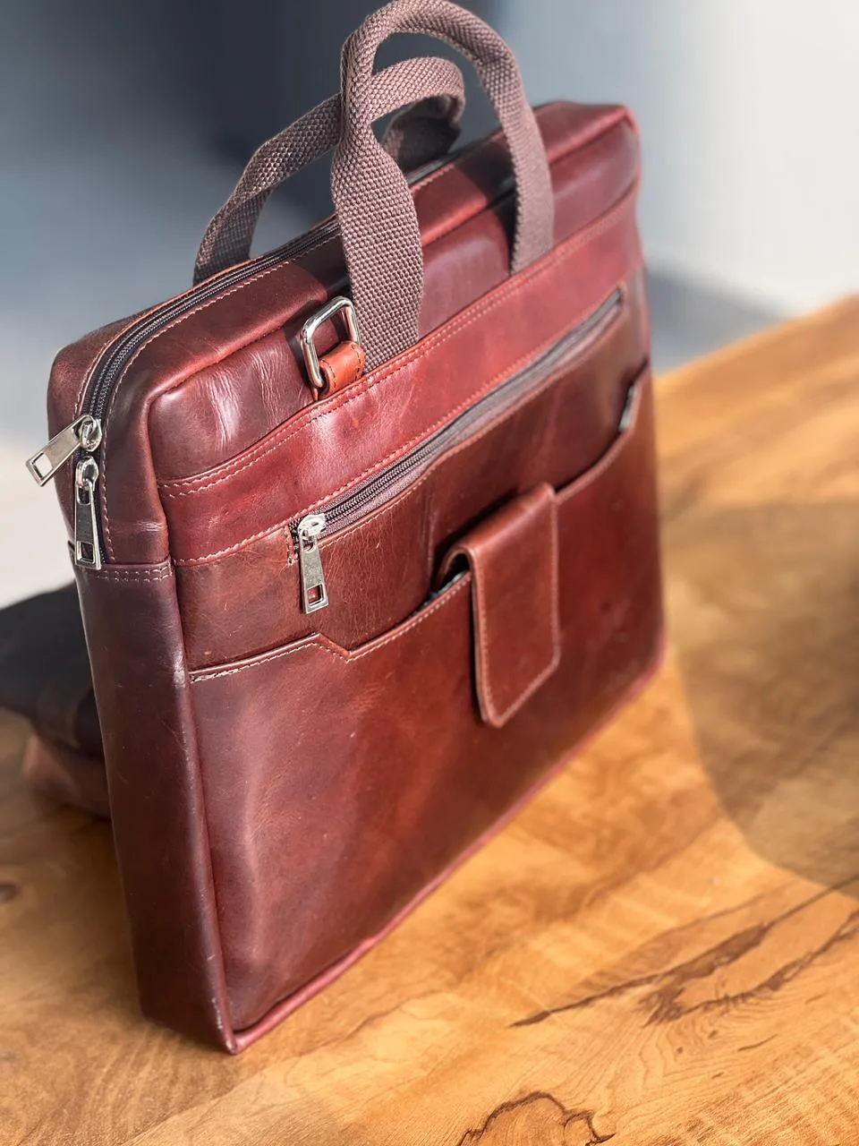 Designed with strong dual handles, smooth zippers, and fine stitching, it’s built for both office and travel convenience. Whether you’re heading to a meeting or working on the go, this slim yet sturdy leather briefcase enhances your professional style effortlessly.