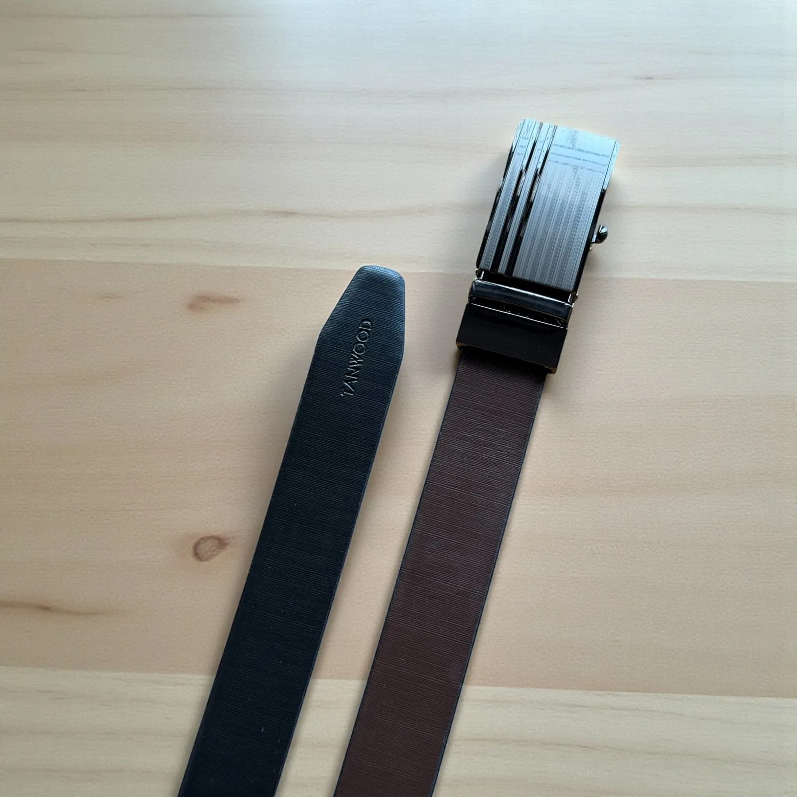 Elevate your wardrobe with this premium TANWOOD reversible automatic buckle belt, designed for maximum style and versatility. The belt features a high-quality reversible strap in classic Black and Brown, allowing you to switch between two timeless looks with ease—perfect for both formal and casual outfits.