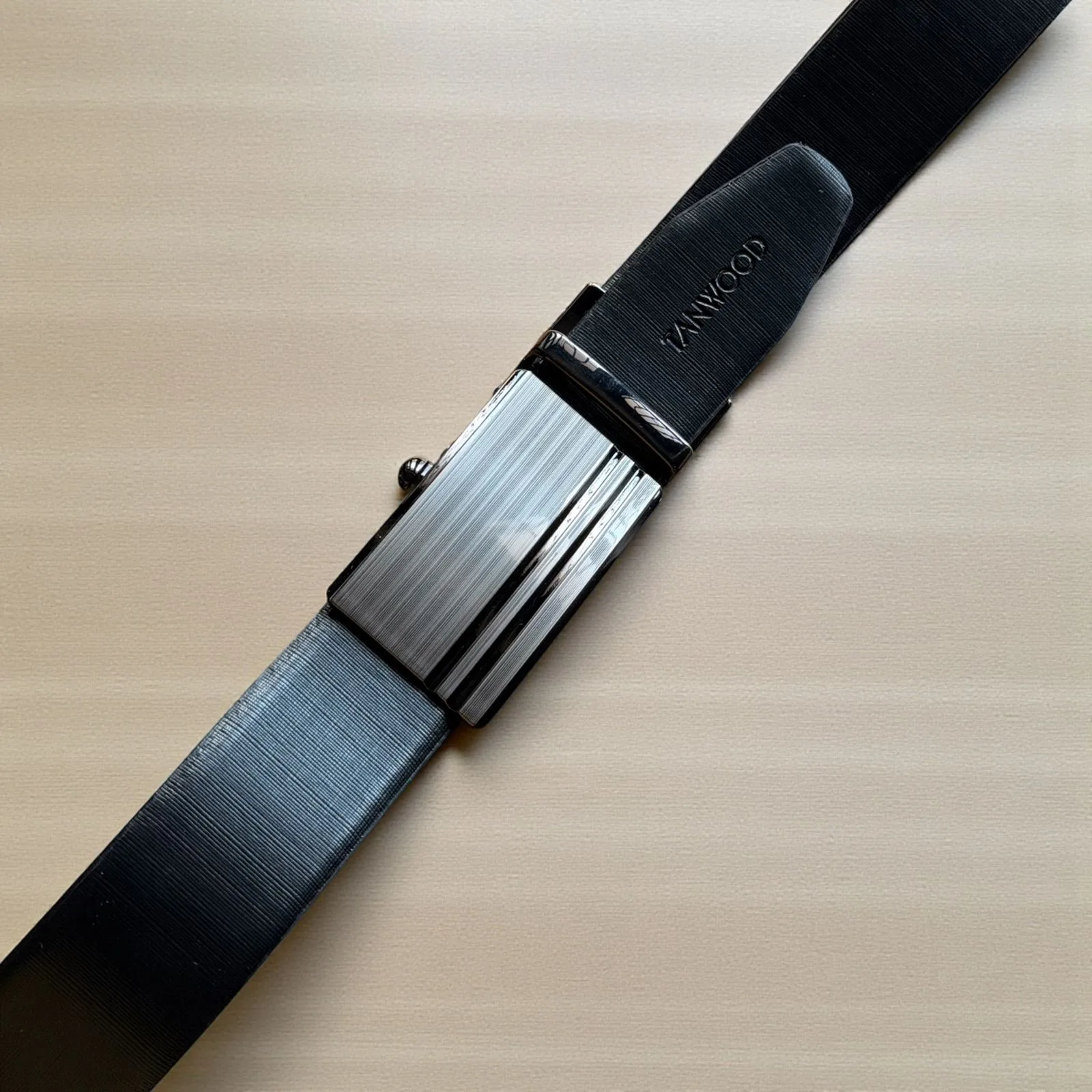 Crafted with a sleek textured finish, the strap pairs beautifully with the modern metallic automatic buckle, which offers smooth ratchet-style adjustment for a precise and comfortable fit. The buckle’s glossy vertical-lined design adds a refined touch, while the TANWOOD branding on the strap enhances its premium appeal.