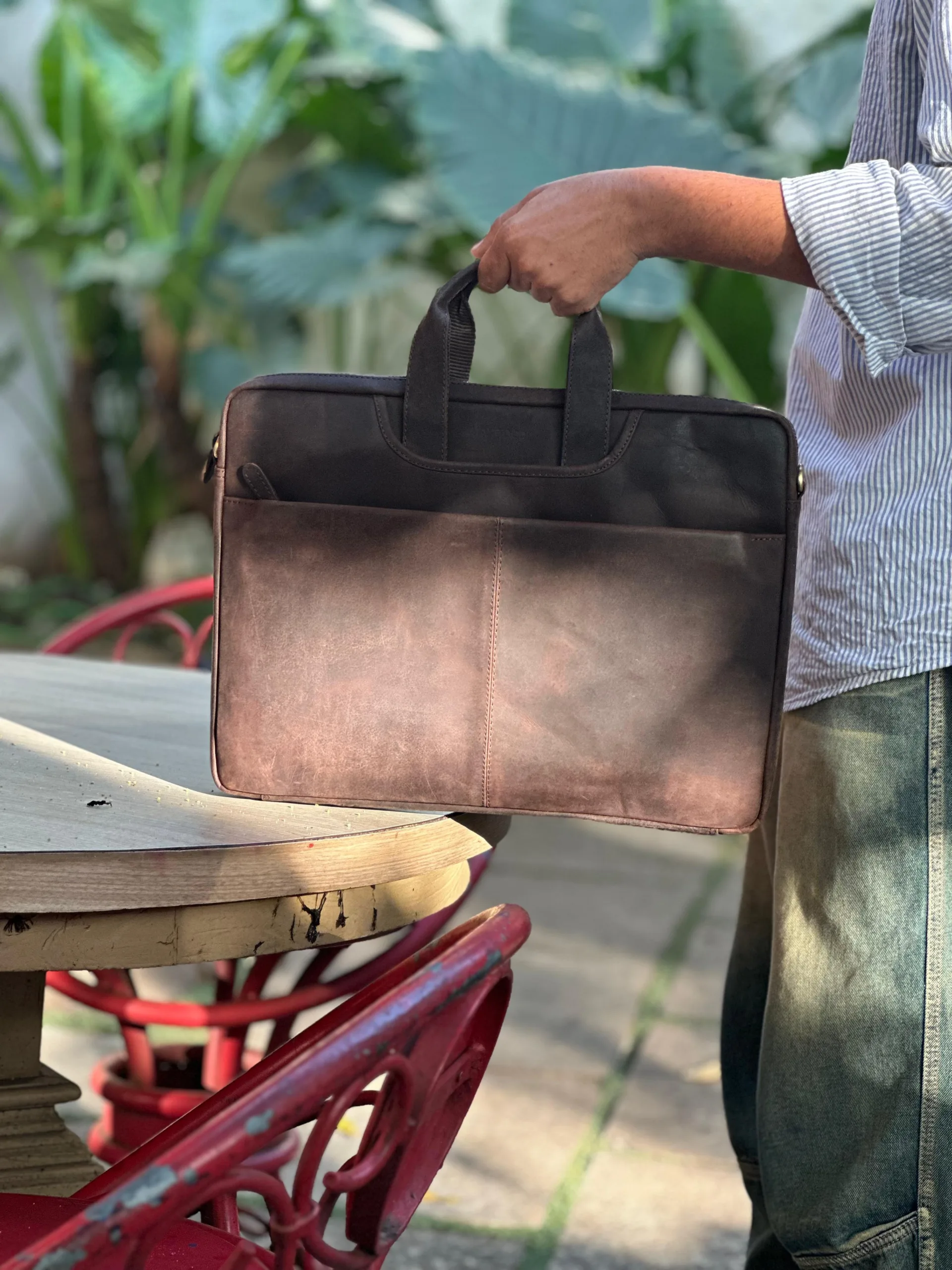 This one from tanwood gives you an unique slim laptop Crafted from tough, 100% Full-Grain Leather, which takes hits well and looks even better with age. Full-Grain Leather is the top layer of the buffalo skin which is the most expensive and toughest part.