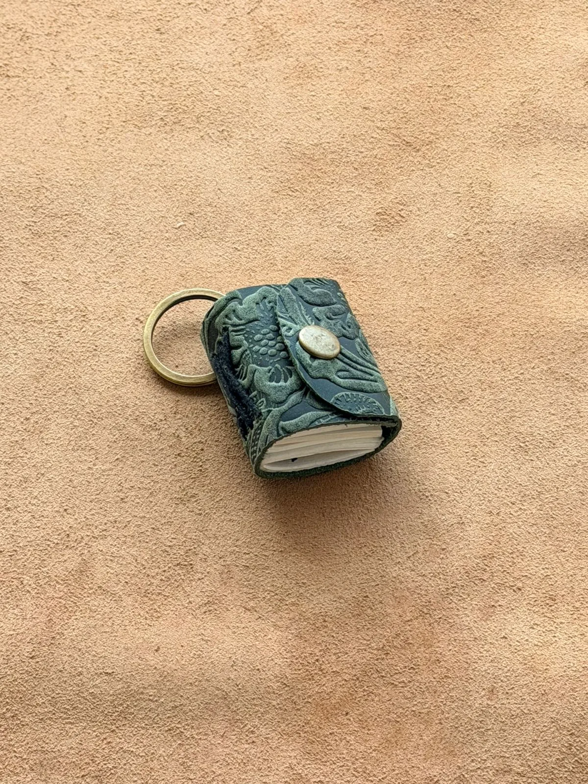 Compact and stylish mini notebook with a genuine leather cover and secure button closure. Comes with a sturdy metal key ring for easy attachment to keys or bags. Perfect for quick notes, reminders, and everyday carry.