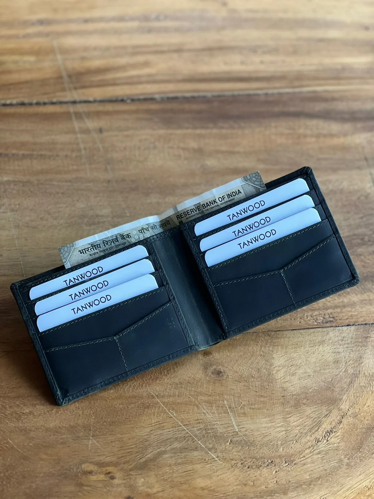- TANWOOD Oil wax Dual Tone leather Bifold Wallet 6 card slots, 2 cash compartments and one coin pocket.