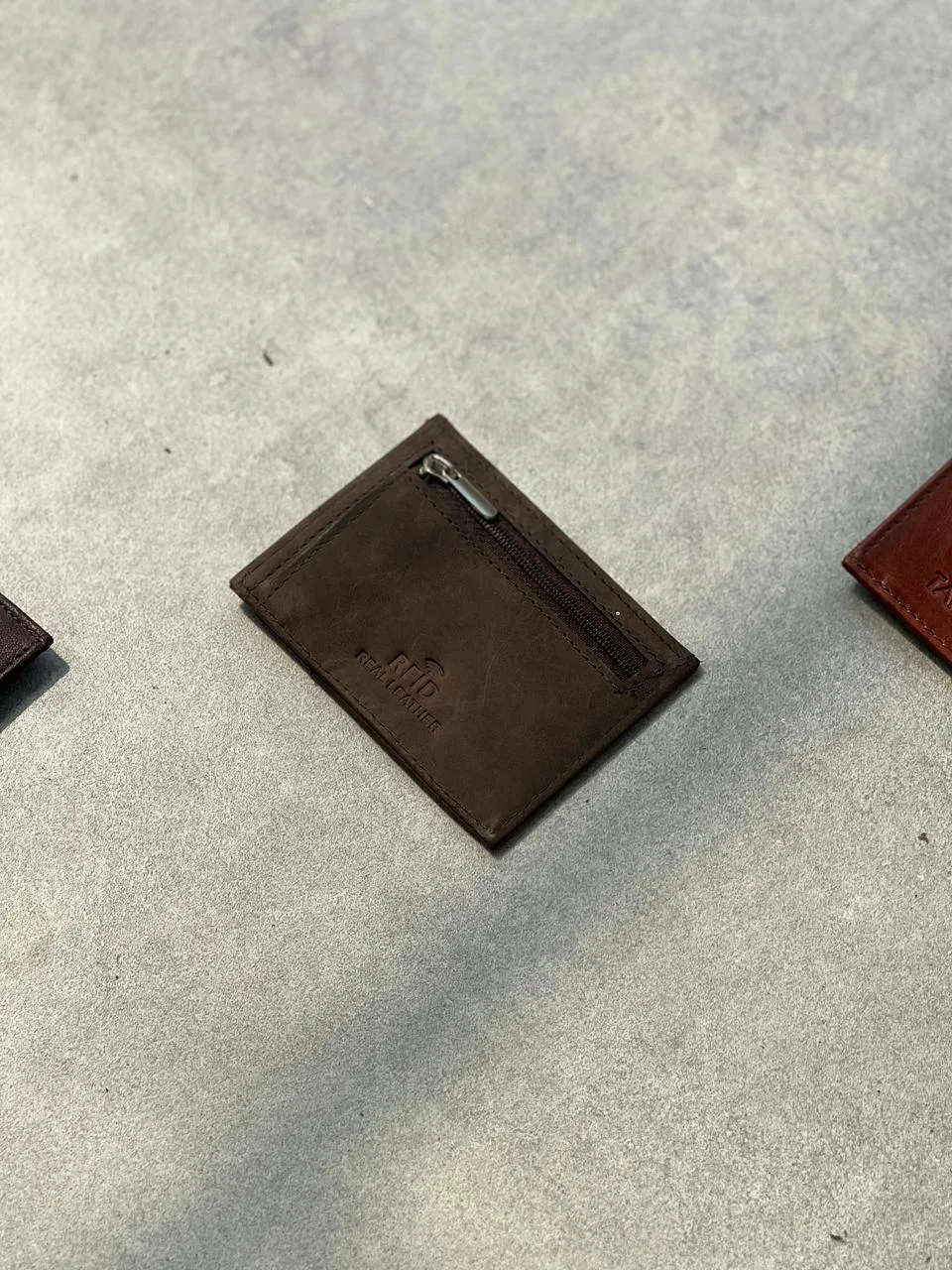 TANWOOD leather zipper card holder now available in three colours . Very slim and compact card holder wallet where we can keep 3-4 cards and some foldable cash also in the middle portion . Backside there is a zipper pocket to keep coins as well .