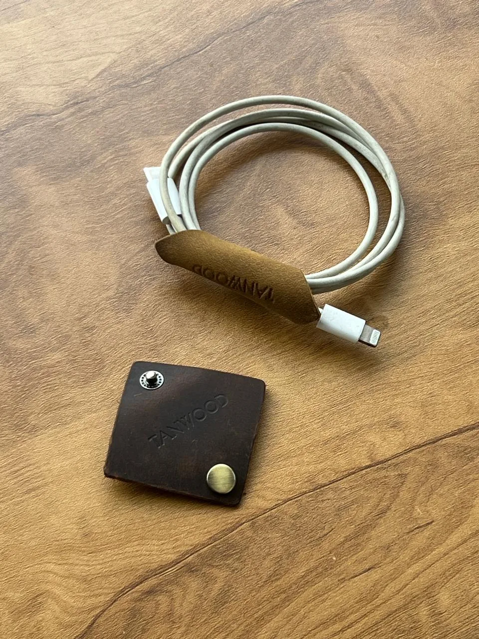 Keep your charging cables neat and tangle-free with the TANWOOD Leather Cable Organizer. Made from durable genuine leather, this small yet practical accessory helps you organize your charging cables, earphones, and small wires easily. The sturdy button closure keeps the cable securely wrapped while giving a premium leather look.