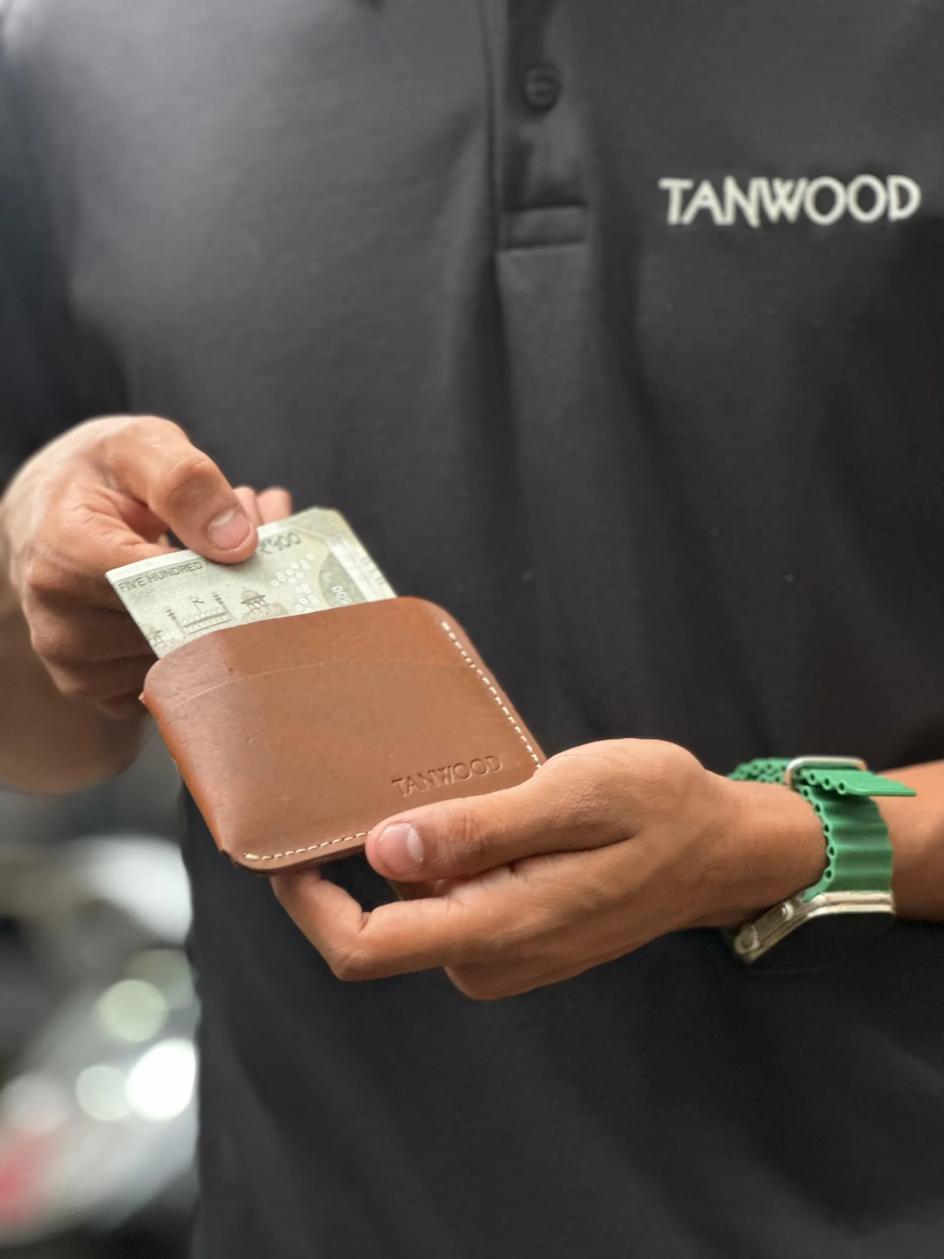 TANWOOD Pure Leather Cash + Card holder. made from pure leather with 4 card slots and 1 foldable cash slot. very slim and minimal cardholder for those who want slim ones in their pockets.