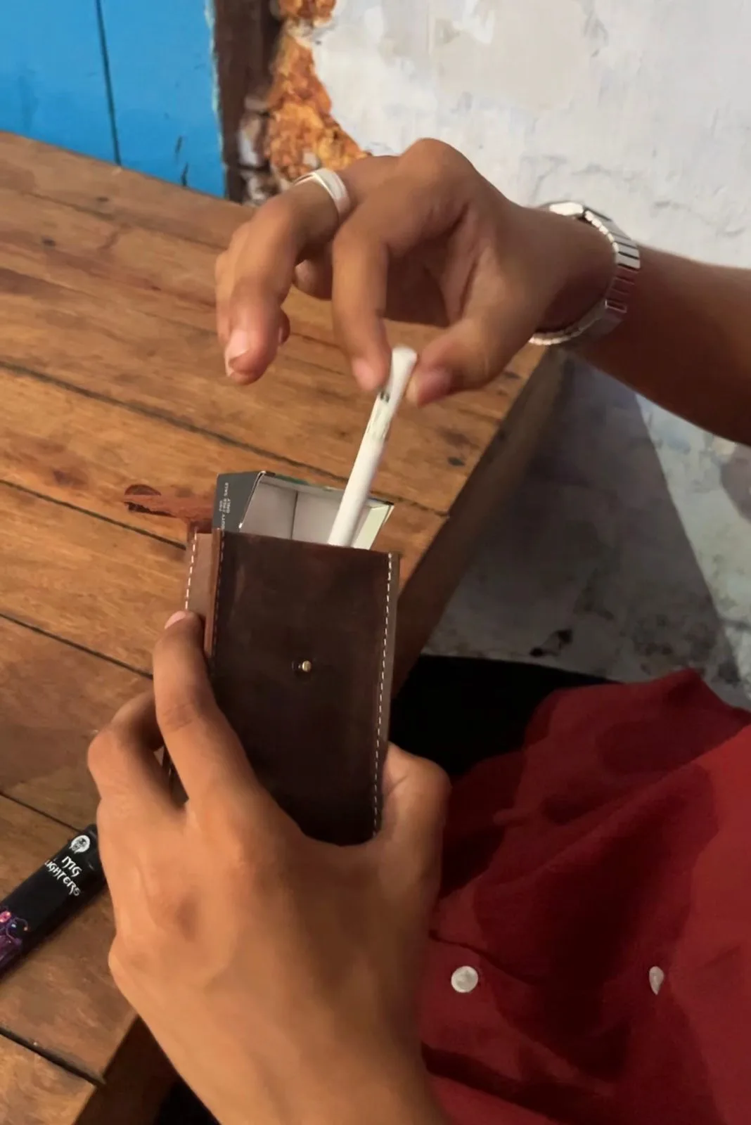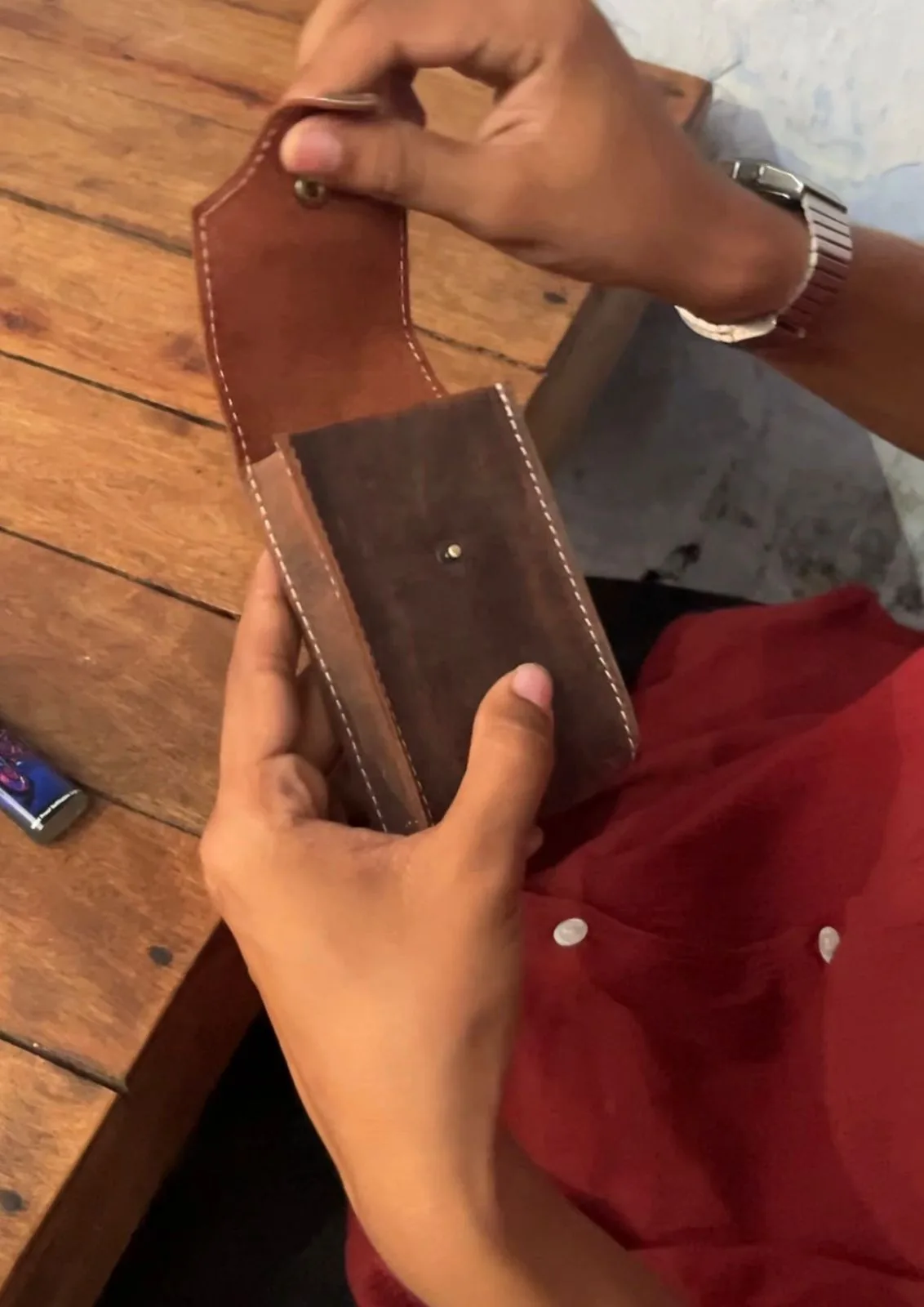 Crafted from premium full-grain leather, this TANWOOD cigarette case combines durability with a classic vintage look. Designed with a secure button closure and strong stitching, it keeps your cigarettes safe and protected while maintaining a sleek, compact profile.