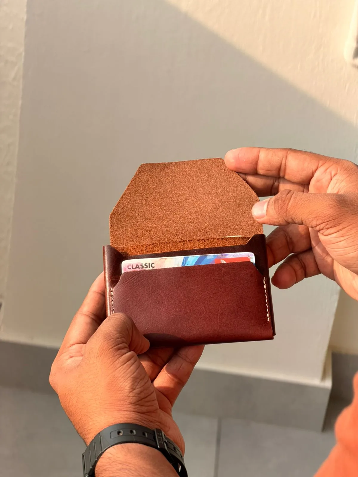 Upgrade your everyday carry with this premium handcrafted leather TANNER card wallet from TANWOOD. Designed for minimalists who value style and functionality, this compact wallet is made from high-quality genuine leather with a rich brown finish that develops a beautiful patina over time.