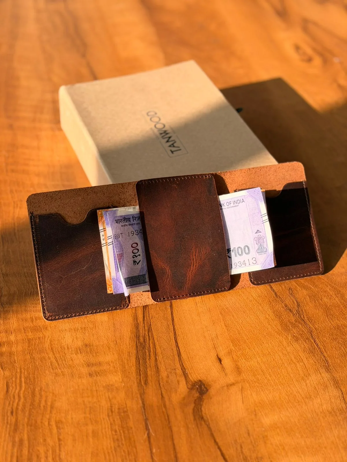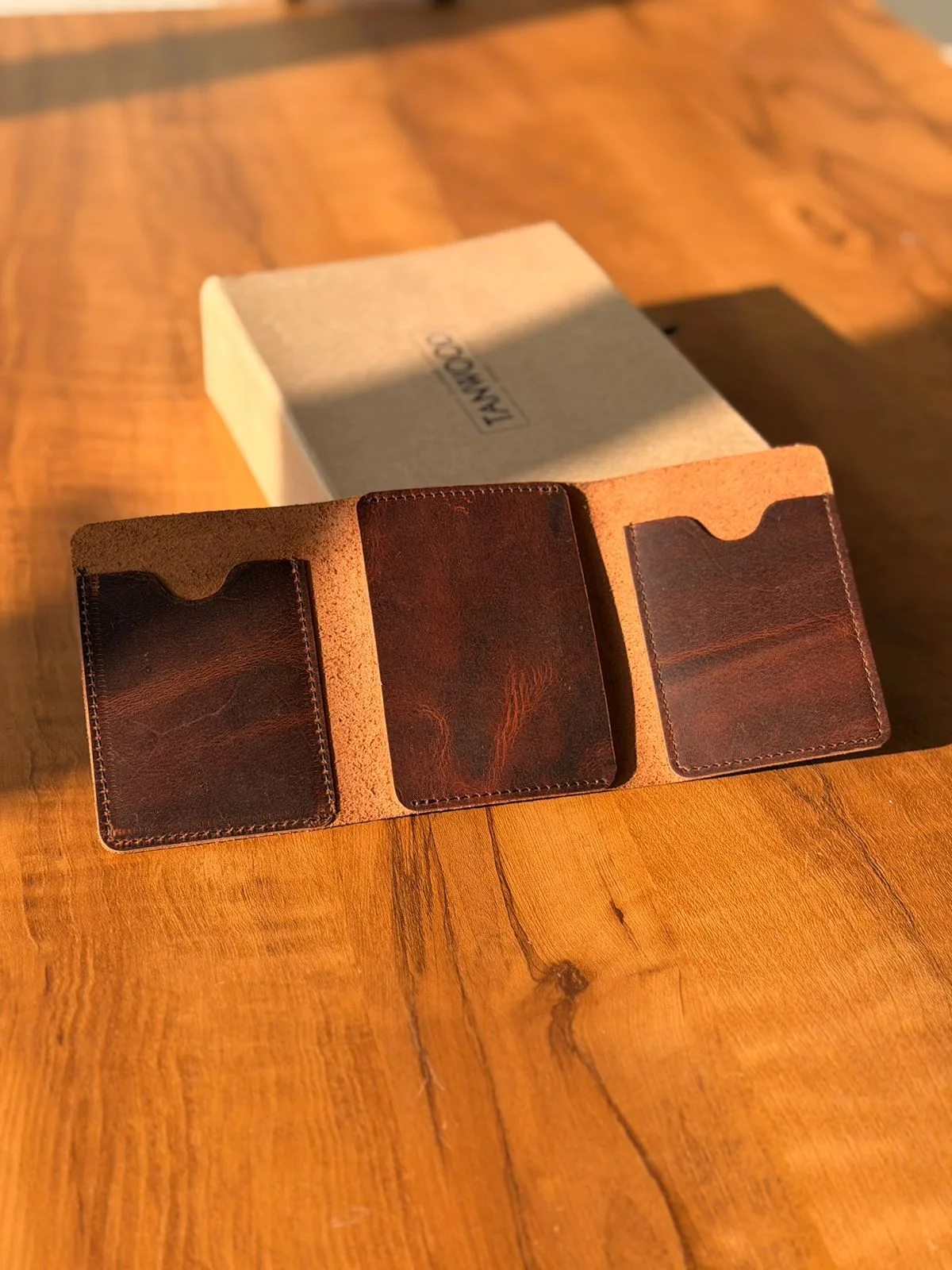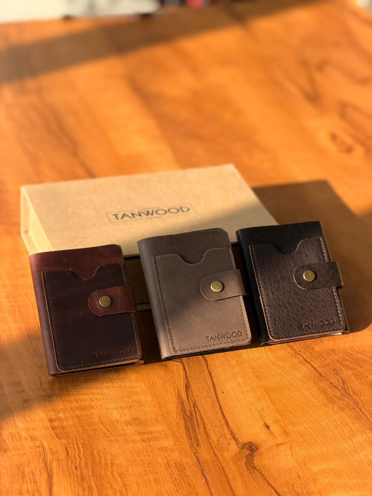 TANWOOD Pure Leather Nano Flip Card Wallet is an unique design slim wallet which can hold 3 Cards and a bundle of cash. made from High quality hunter Leather.