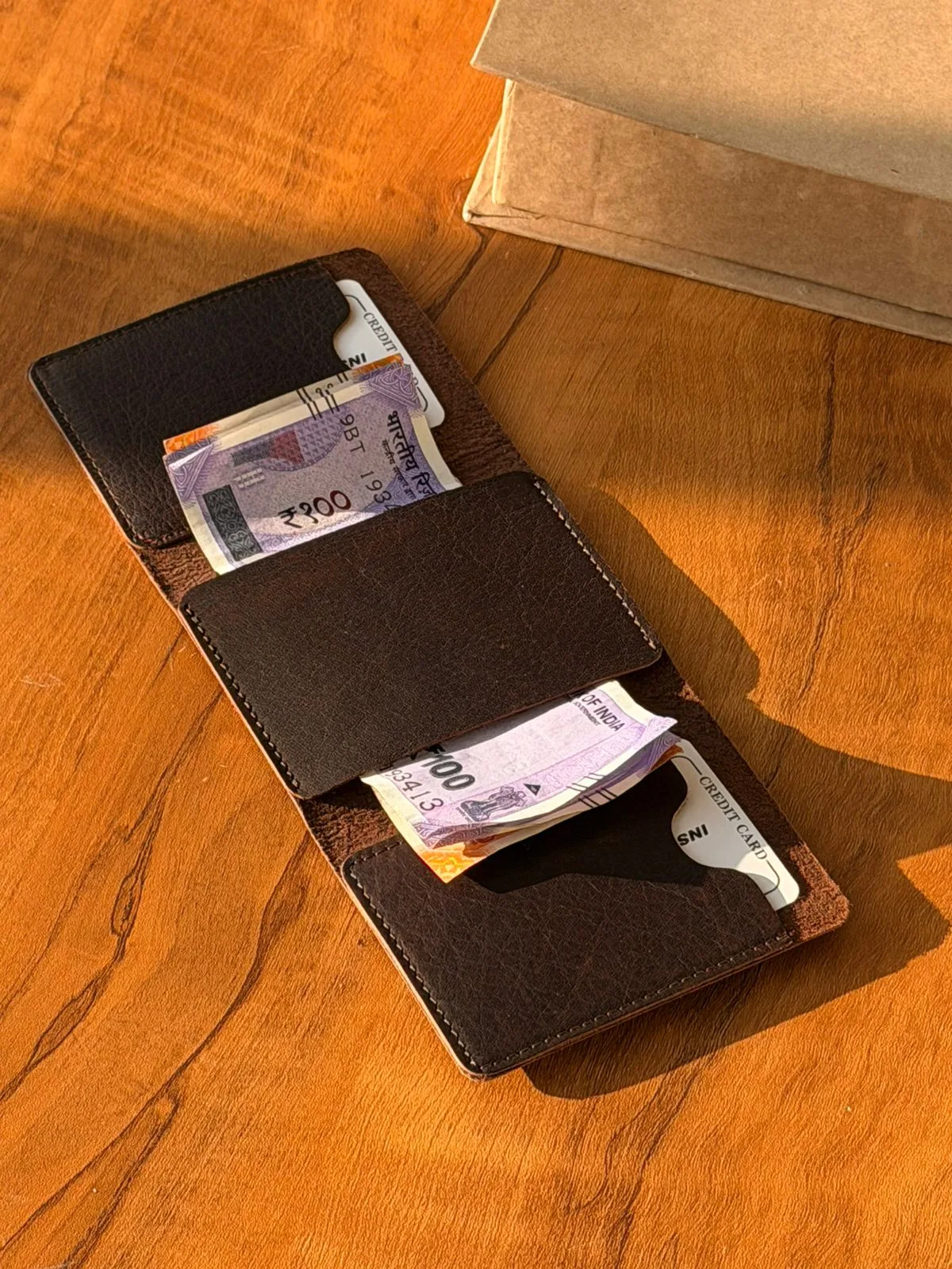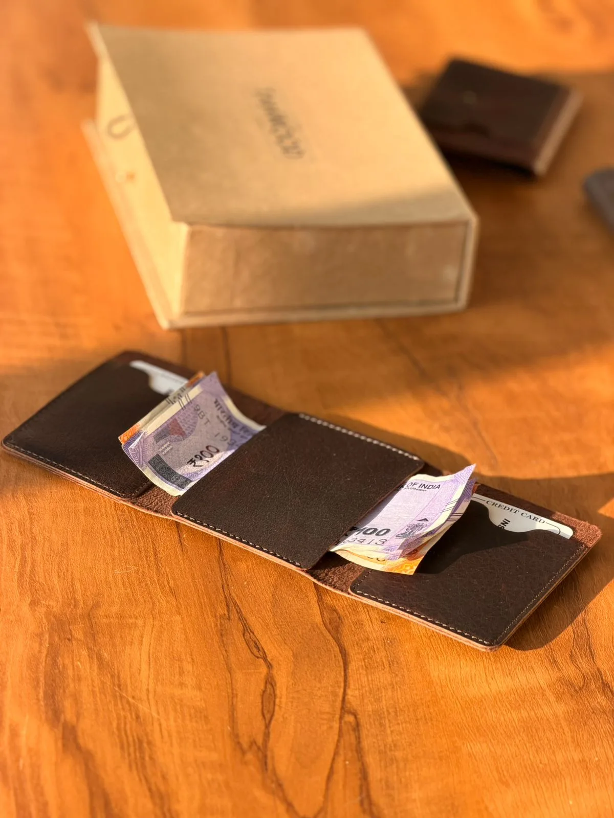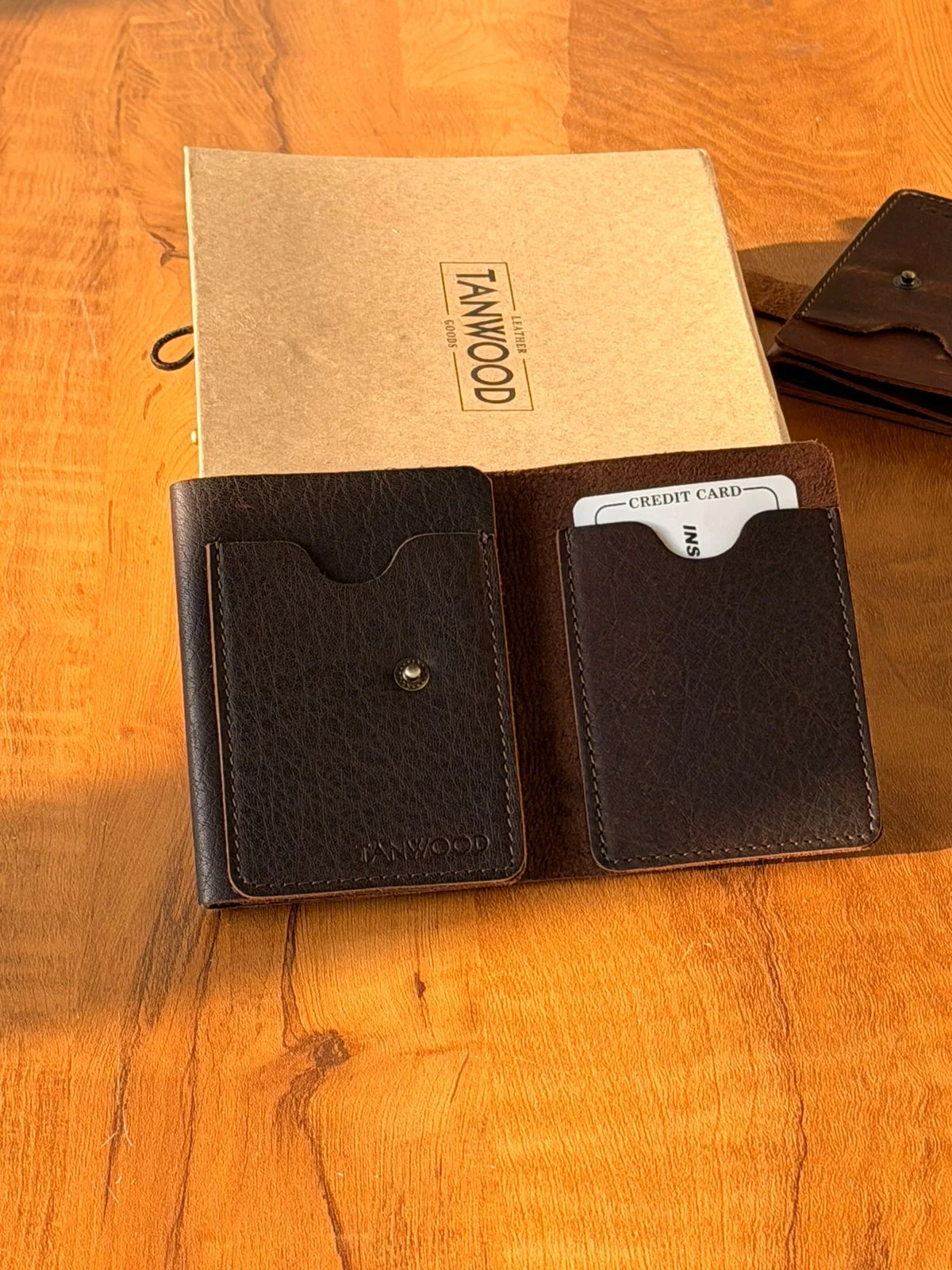 TANWOOD Pure Leather Nano Flip Card Wallet is an unique design slim wallet which can hold 3 Cards and a bundle of cash. made from High quality hunter Leather.