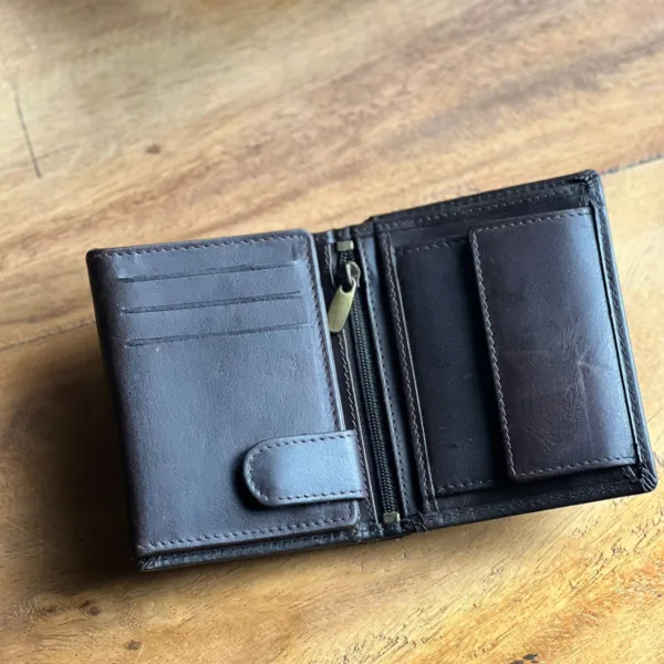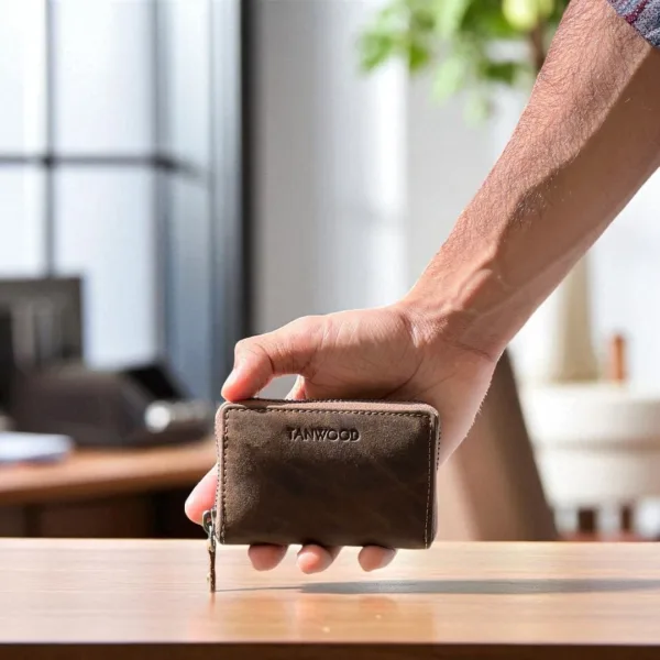 Classic & Functional – A premium TANWOOD leather wallet designed with multiple card slots, a secure zip compartment, and a sleek finish for everyday elegance.