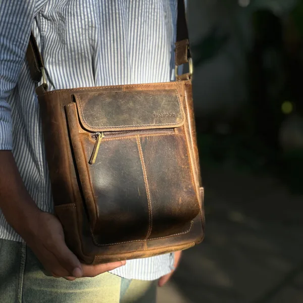 Voyager Sling Carry your essentials in style with TANWOOD’s premium leather sling bag. Handcrafted from genuine leather, this bag features one main compartment, an inner zipper pocket, and an extra pocket for your mobile phone or power bank. On the outside, it offers three additional zipper pockets for quick access to your essentials. Perfect for daily commutes, travel, or casual outings, it blends rugged durability with timeless elegance — available in classic brown and green finishes.