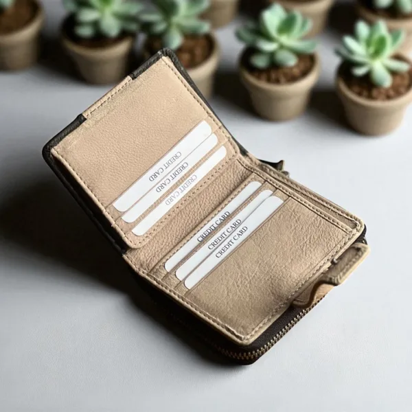 The Tanwood leather Zipvault wallet is crafted from premium leather, offering a sleek and durable design. Compact yet spacious, it securely holds your cards, cash, and coins with a smooth zip closure. A perfect blend of style and functionality for everyday carry. foldable cash up to 2000 can be inserted.