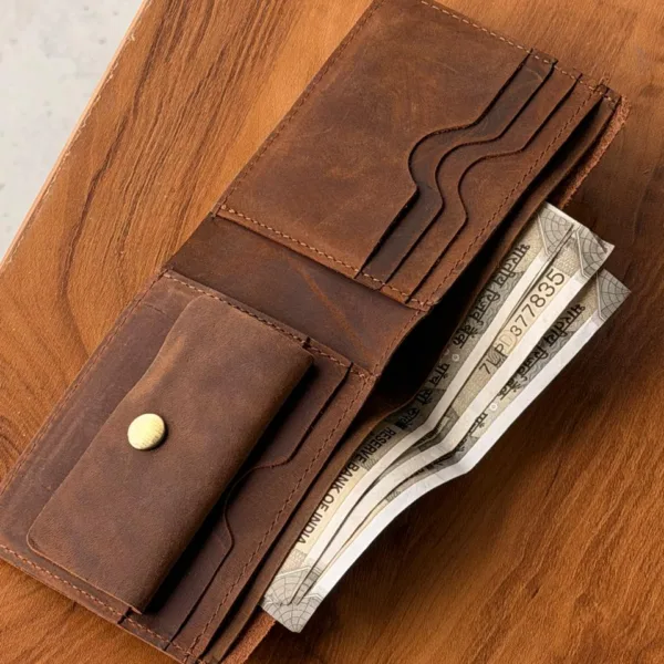 TANWOOD  Pure Hunter  leather Handcrafted Two Cash -  wallet with 7 card slots, 2 cash compartments and one coin pocket. now available raw hunter varieties. Complete Leather Wallet Made From pure Leather.TOP QUALITY LEATHER: This Men’s wallet is neatly designed and made with  FIRM genuine leather and No lining.WHAT YOU SEE IS WHAT YOU GET: Check out our product images for details, what you see is what you get. We always stand behind our products, we know you’ll love our wallets, If you aren’t completely happy with what you got, simply exchange it within 7 days
